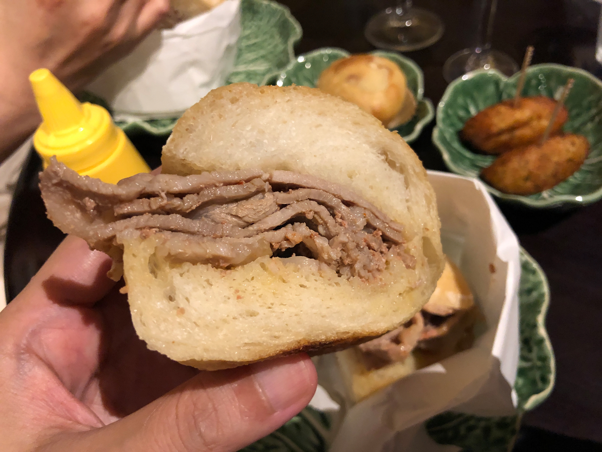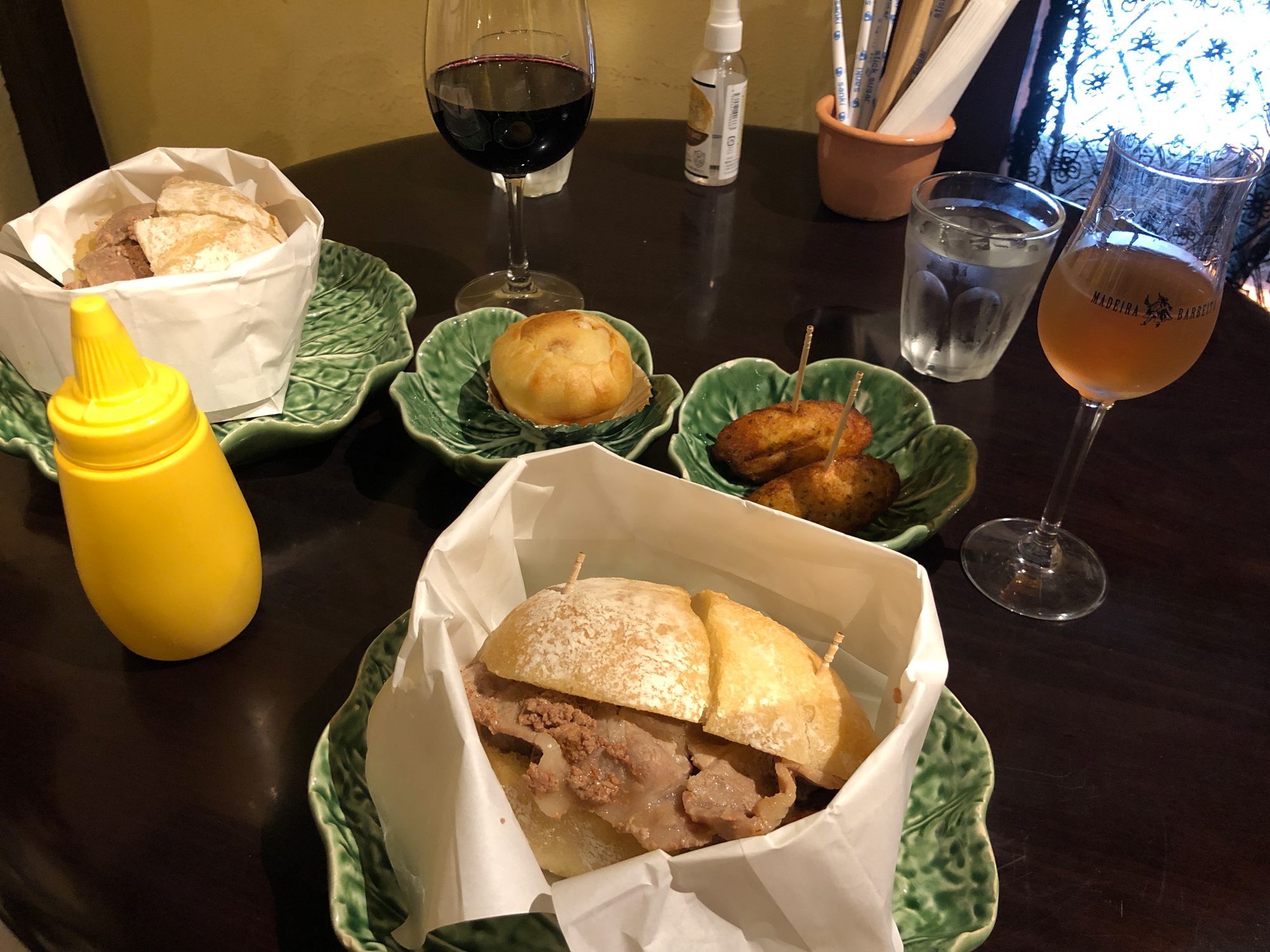 Non ho potuto nascondere la mia sorpresa per la quantità di carne di maiale che era stata messa nel pane fatto in casa, ma ero letteralmente affascinato dal delizioso sapore che si diffondeva in bocca e dal sapore unico che non avevo mai assaggiato prima in Giappone. Era un abbinamento perfetto con il vino Madeira e il vino delle isole Madeira del Portogallo e mentre lo gustavo mentre ascoltavo musica portoghese in sottofondo, avevo la sensazione che questo spazio a Kyoto fosse collegato al Portogallo, una strana sensazione. La torta di pollo e le crocchette di merluzzo essiccate che abbiamo ordinato con il nostro pasto erano troppo buone per essere finite, e siamo stati molto contenti di essere andati con lo stomaco vuoto quel pomeriggio.