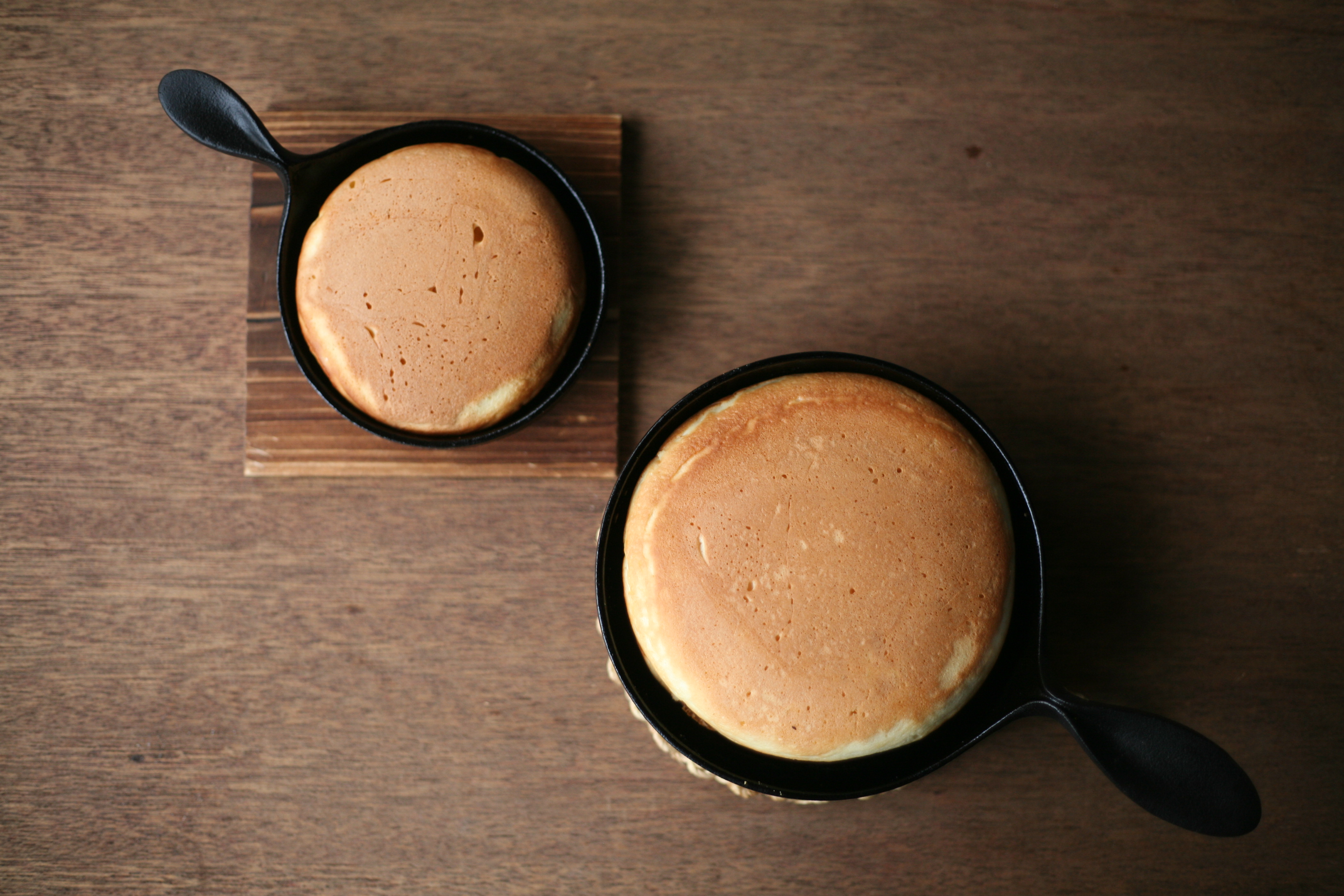 Con la padella di Rikucho Ogasawara è possibile cucinare a casa hotcake di qualsiasi dimensione e spessore. Impilate il numero desiderato di hotcakes, ricopriteli con quadratini di burro e otterrete gli hotcakes del libro illustrato. Che ne dite di una mattina di festa che inizia con gli hotcake?