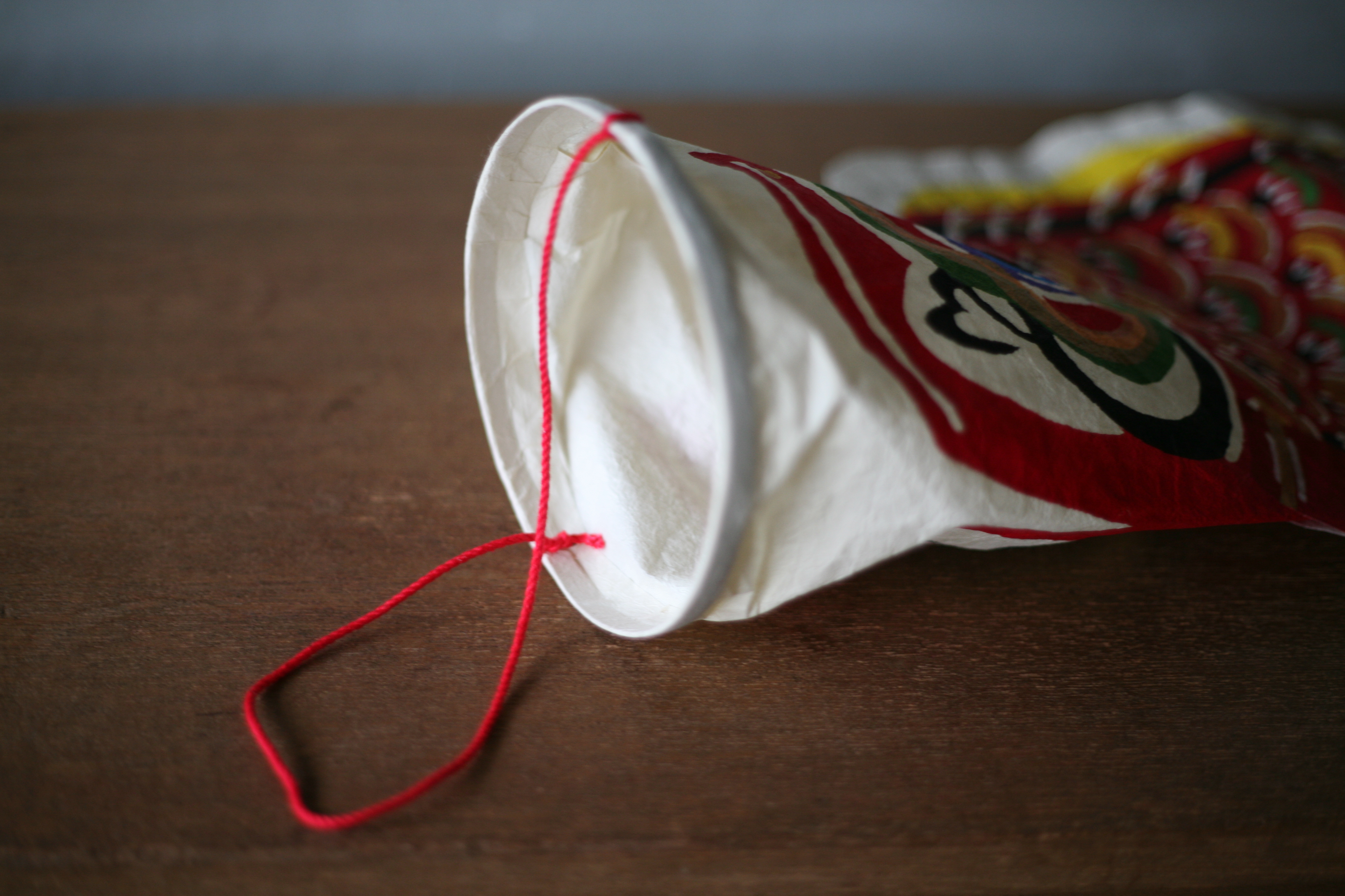 Questo streamer a forma di carpa, realizzato in carta giapponese fatta a mano con tintura a stencil, è straordinariamente leggero e facile da esporre. Oltre ad appenderlo al palo incluso, è possibile lasciarlo nuotare lungo una parete o sospenderlo al soffitto, godendo ogni anno di nuove idee di esposizione. Guardarlo ondeggiare dolcemente nella brezza del condizionatore d'aria cattura il fascino unico della carta washi. Con il passare degli anni, sviluppa una lucentezza simile alla pelle, evolvendosi in un pezzo ancora più profondamente espressivo.