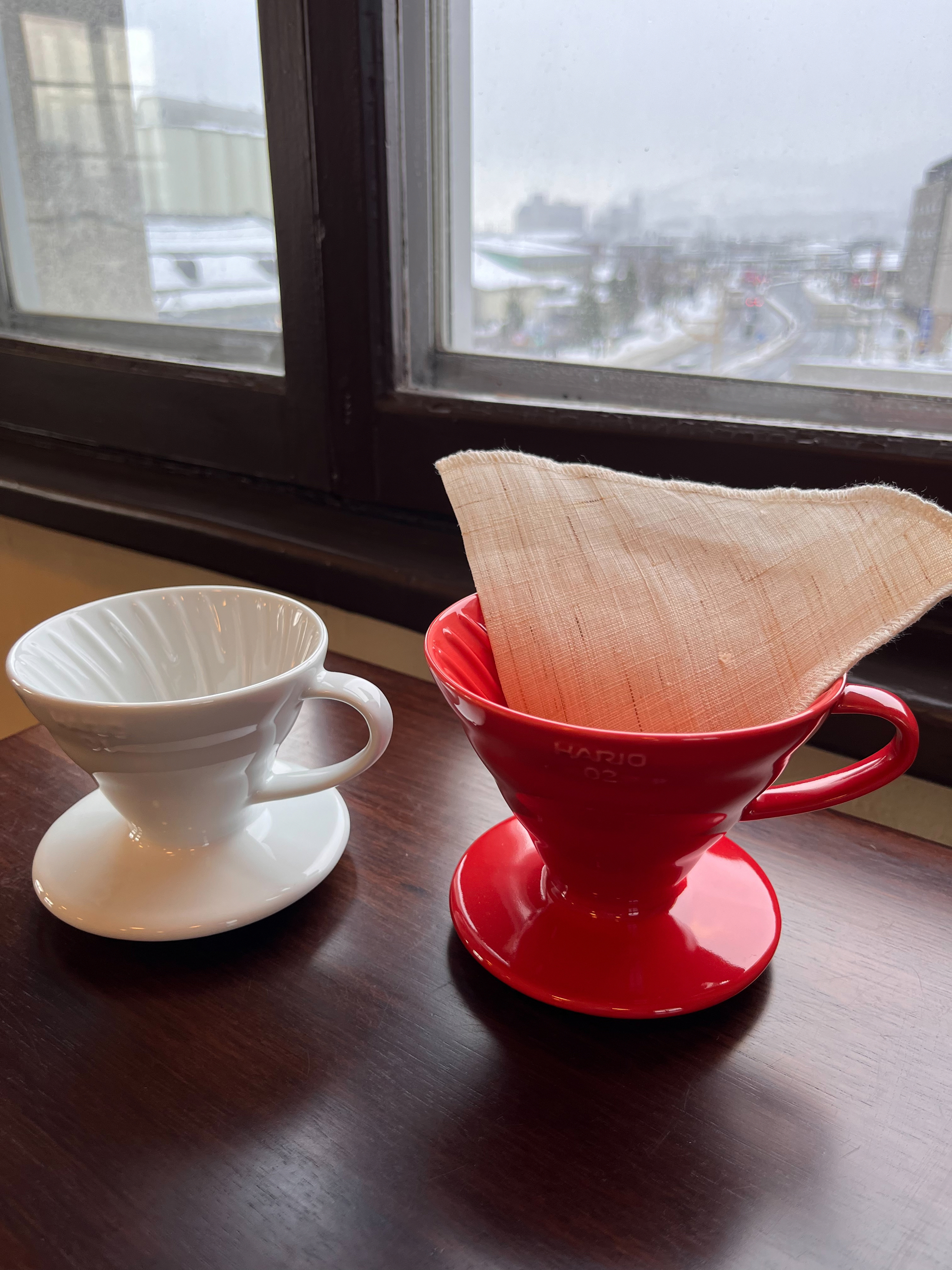Nel nostro showroom di Otaru abbiamo prodotti pensati per preparare un caffè delizioso. Il “V60 Ceramic Dripper” è uno strumento per la preparazione del caffè molto apprezzato in tutto il mondo, sviluppato da Hario, un produttore di strumenti scientifici e vetreria resistente al calore. Realizzato uno ad uno da artigiani della regione di Arita, rinomata per la sua storia di 400 anni, incarna le tecniche tradizionali. La sua forma conica a 60 gradi è ideale per l'estrazione del caffè. Le intricate scanalature che si estendono verso l'interno superiore ricreano il profilo aromatico della preparazione con filtro in tessuto, anche quando si utilizza un filtro di carta. A oltre 20 anni dal suo lancio, rimane amato sia dai baristi professionisti che dagli appassionati di caffè. Tenendolo in mano si percepisce il peso soddisfacente caratteristico della porcellana e la texture unica del lavoro artigianale, impossibile da replicare con una macchina. Disponibile in due colori, un bianco puro e chiaro e un rosso vivace, entrambi promettono di illuminare qualsiasi cucina.