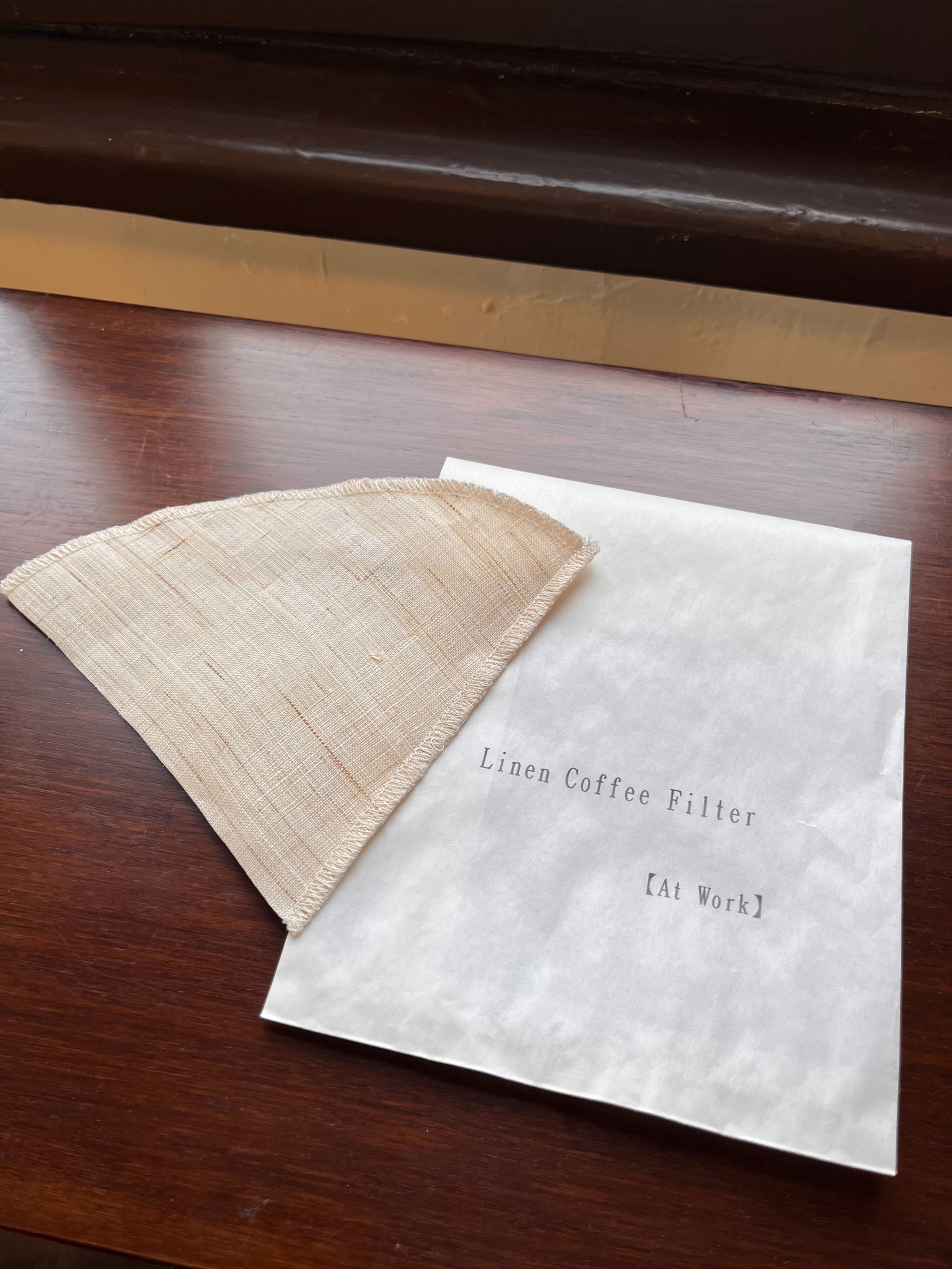 Inoltre, il “filtro per caffè in lino” di Okai Mafu Shoten è un filtro riutilizzabile realizzato in tessuto di lino intrecciato a mano. Tessuto con fili leggermente più spessi, si restringe quando è bagnato, consentendo di preparare una tazza di caffè ricco, perfetto per quando è necessario concentrarsi sul lavoro.
